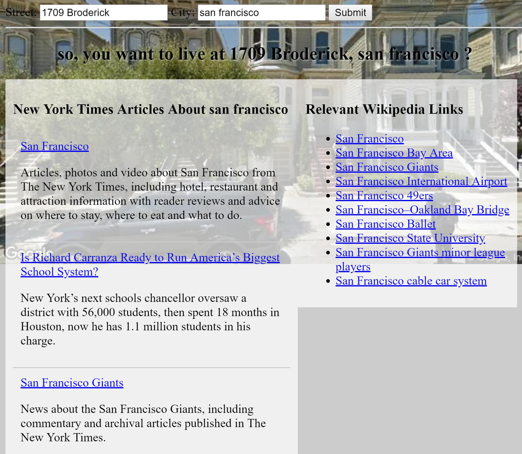 and you'll see a google steet view image of that address. As well as relevent articles from Wikipedia